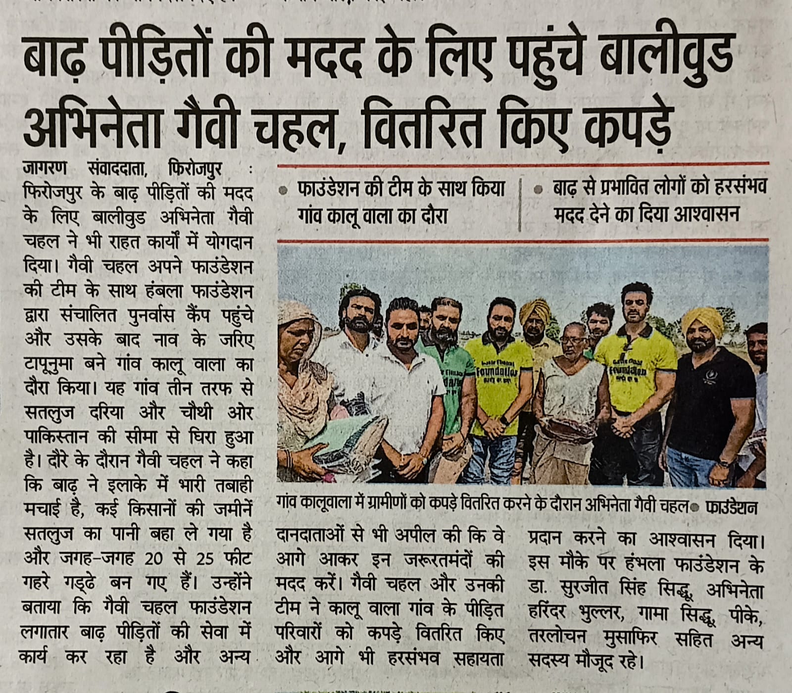 The Gavie Chahal Foundation is actively supporting flood-affected communities in Punjab by providing all basic needs — from food, shelter, clothes, and animal feed to farming support and financial aid.